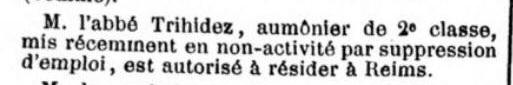 d'Honneur le 29 décembre 1882, étant Aumônier militaire à l'Hôpital
