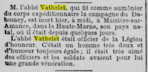 d'Honneur le 14 décembre 1892 étant en service au DAHOMEY.