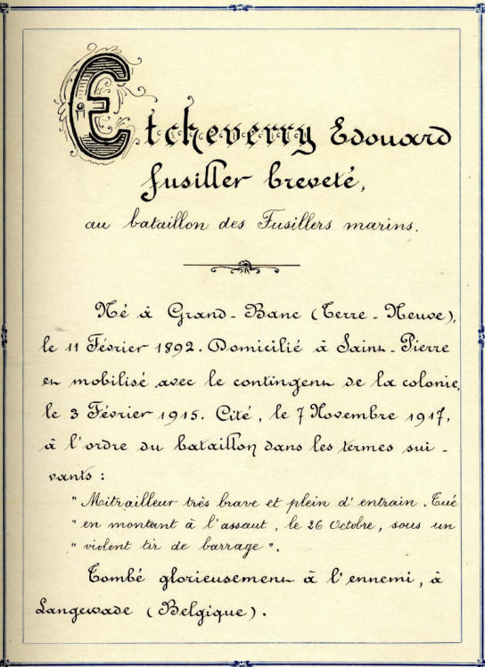 SAINT-PIERRE-et-MIQUELON, Matelot ... sans spécialité, tué le 26