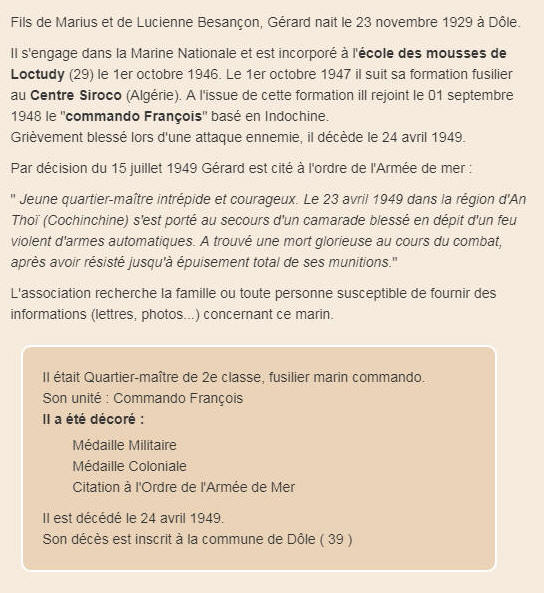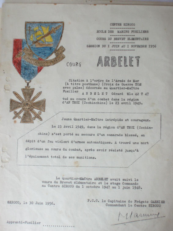 Un cours porte son nom à l'Ecole des Fusiliers Marins du 1er juin au