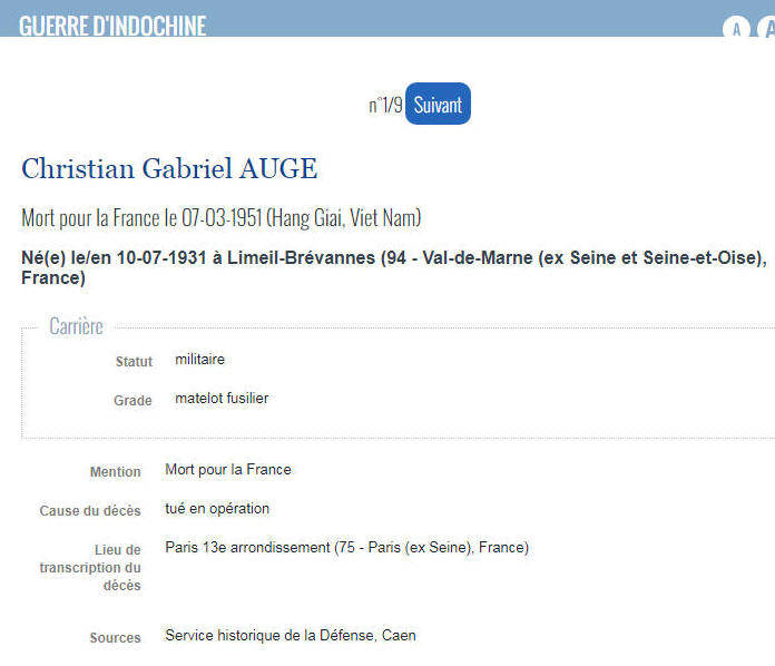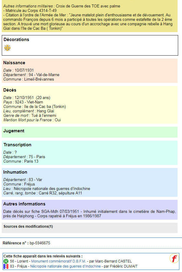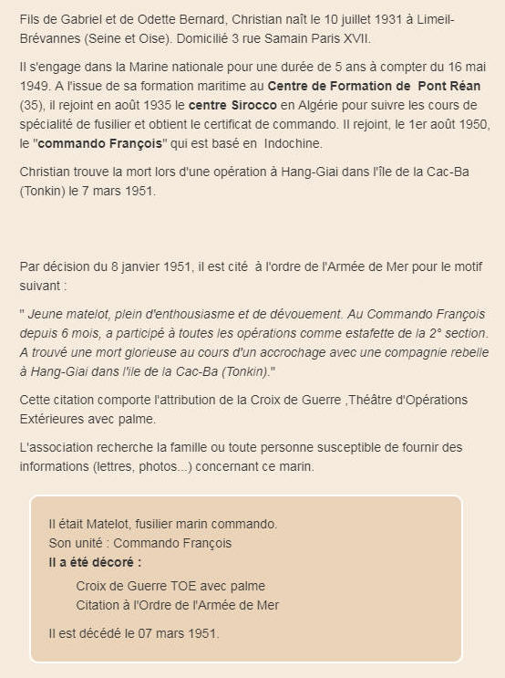 Un cours porte son nom à l'Ecole des Fusiliers Marins du 15 décembre