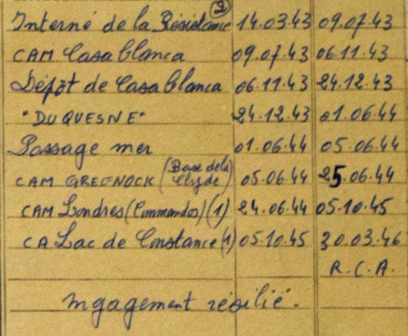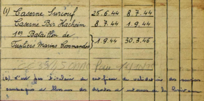Embarque au commando, le 1er septembre 1944 jusqu'au 30 mars 1946