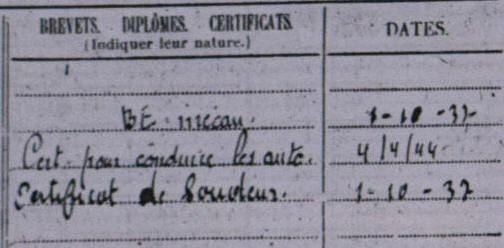 Son père, élève gendarme en 1921, Croix de guerre étoile de bronze,