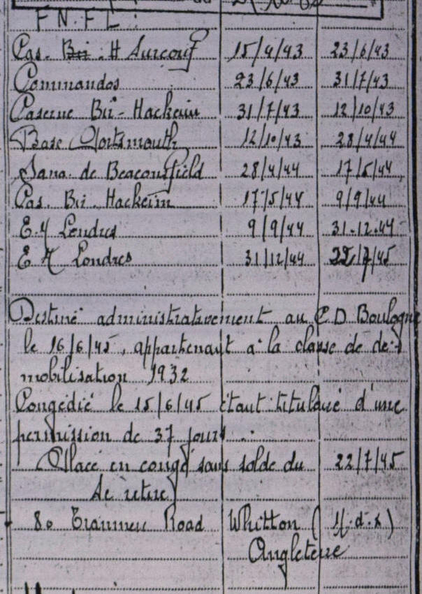 FNFL pour une durée de la guerre + 3 mois à compter du 15 avril 1943