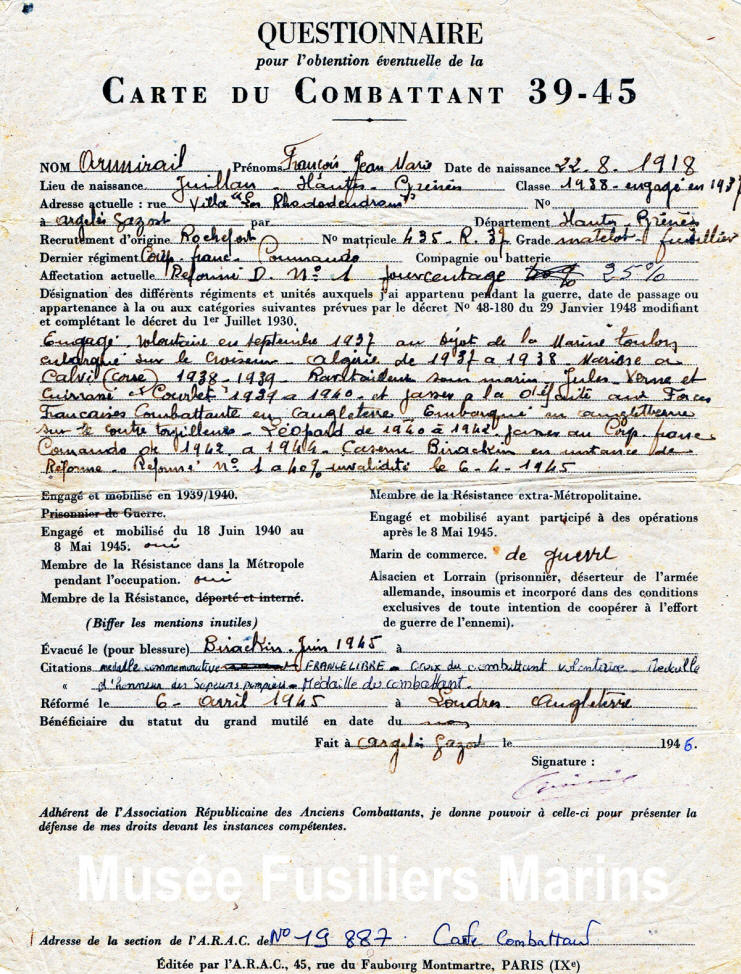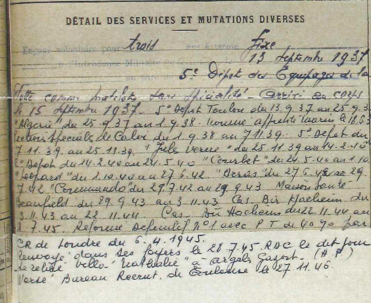 S’engage dans la Marine Nationale en 1937, rejoint le Général de Gaulle