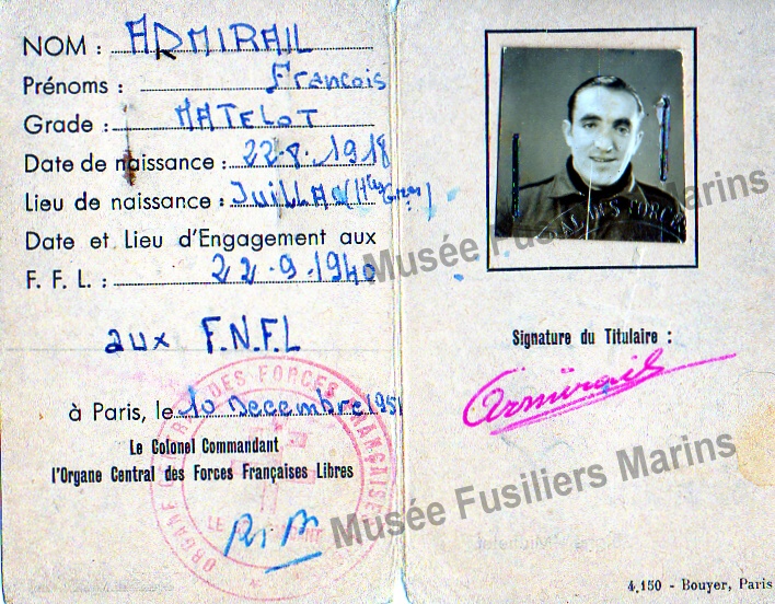 le 10 Juin 1940 à Londres et s’engage dans les “Forces Françaises Libres