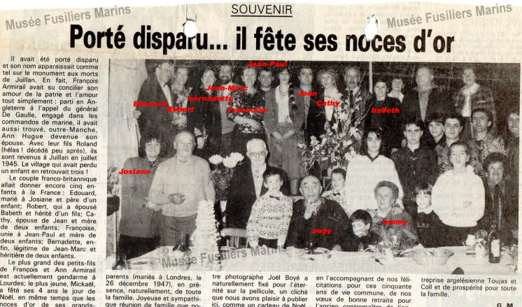 françaises libres. Mariage : 26 décembre 1942, Wandworth Londres,