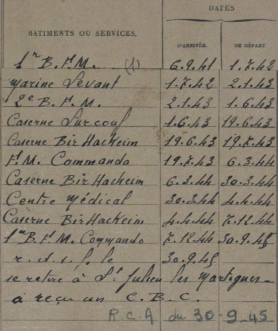 1er BFMC du 19 juillet 1943 au 15 mars 1944 et du 1er novembre 1944 au