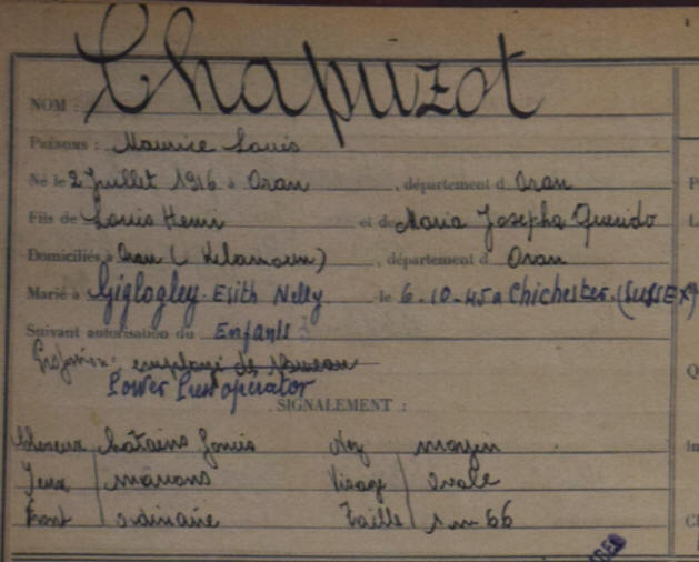 Né le 2 juillet 1916 à ORAN (Algérie) - Décédé en septembre 1978 à OXFORDSHIRE