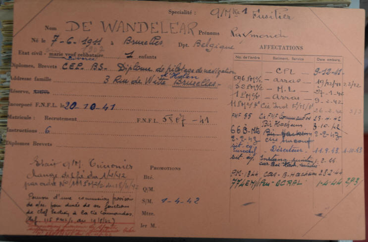 second maître (équivalent à sergent) Raymond De Wandelaer intègre la 1re