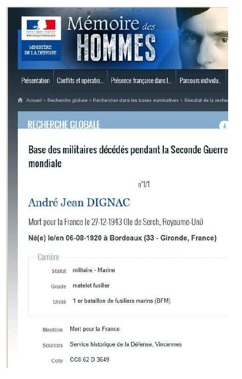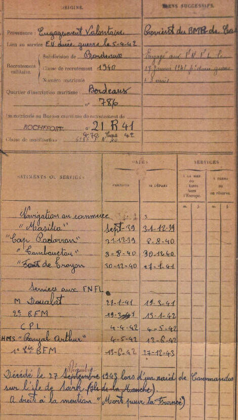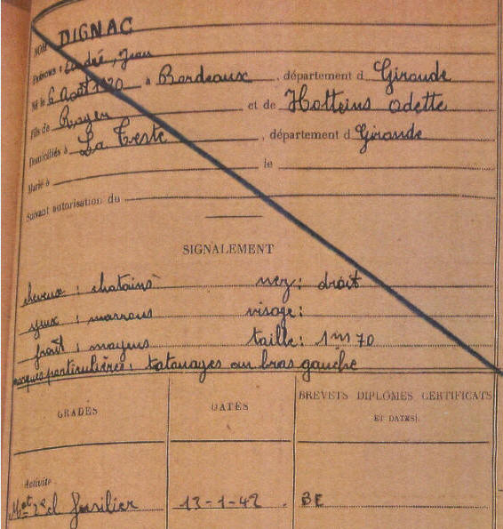 Né le 6 août 1920 à BORDEAUX (Gironde) - Décédé le 27 décembre 1943 sur