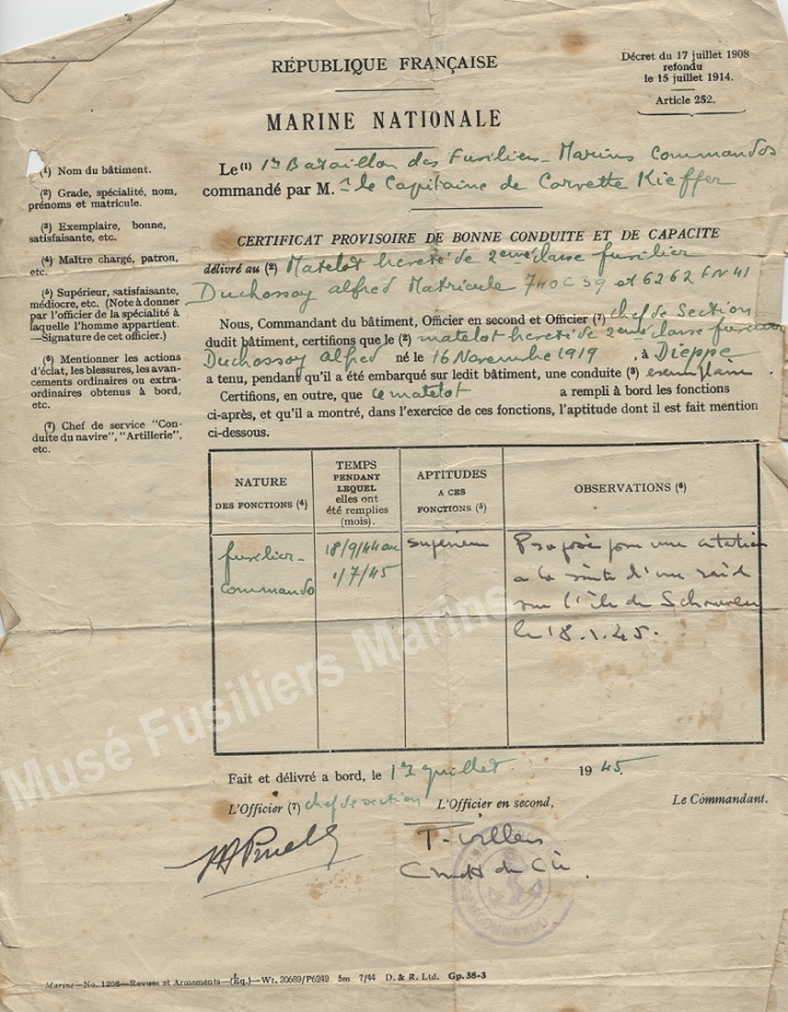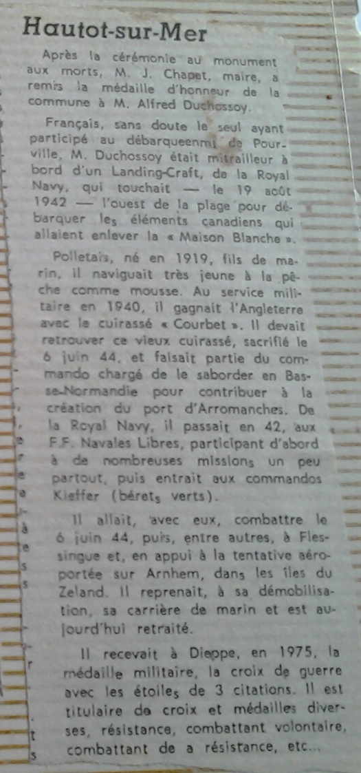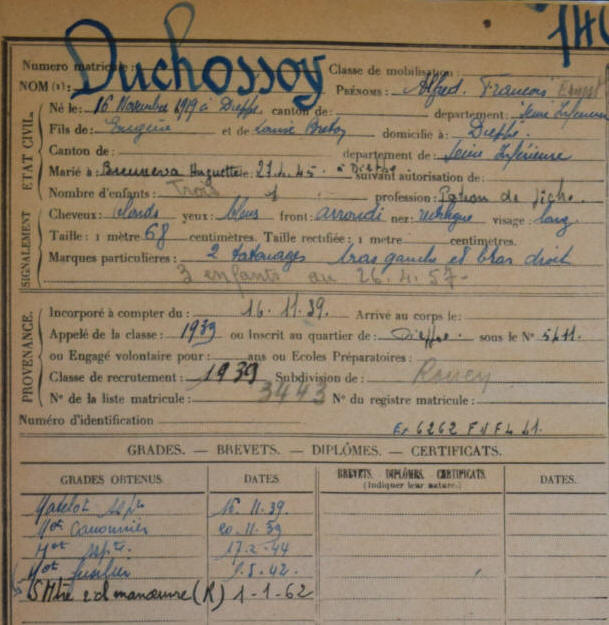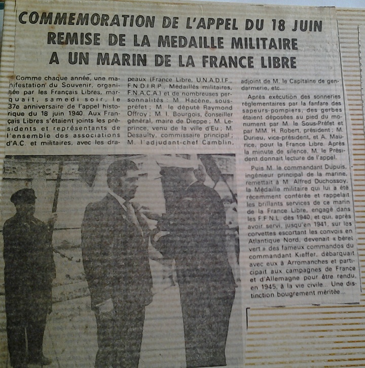 Né le 19 novembre 1919 à DIEPPE (Seine Maritime) - Décédé 8 juillet