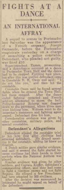 Portmadoc. Plusieurs soldats français y participaient. Joseph Fernande