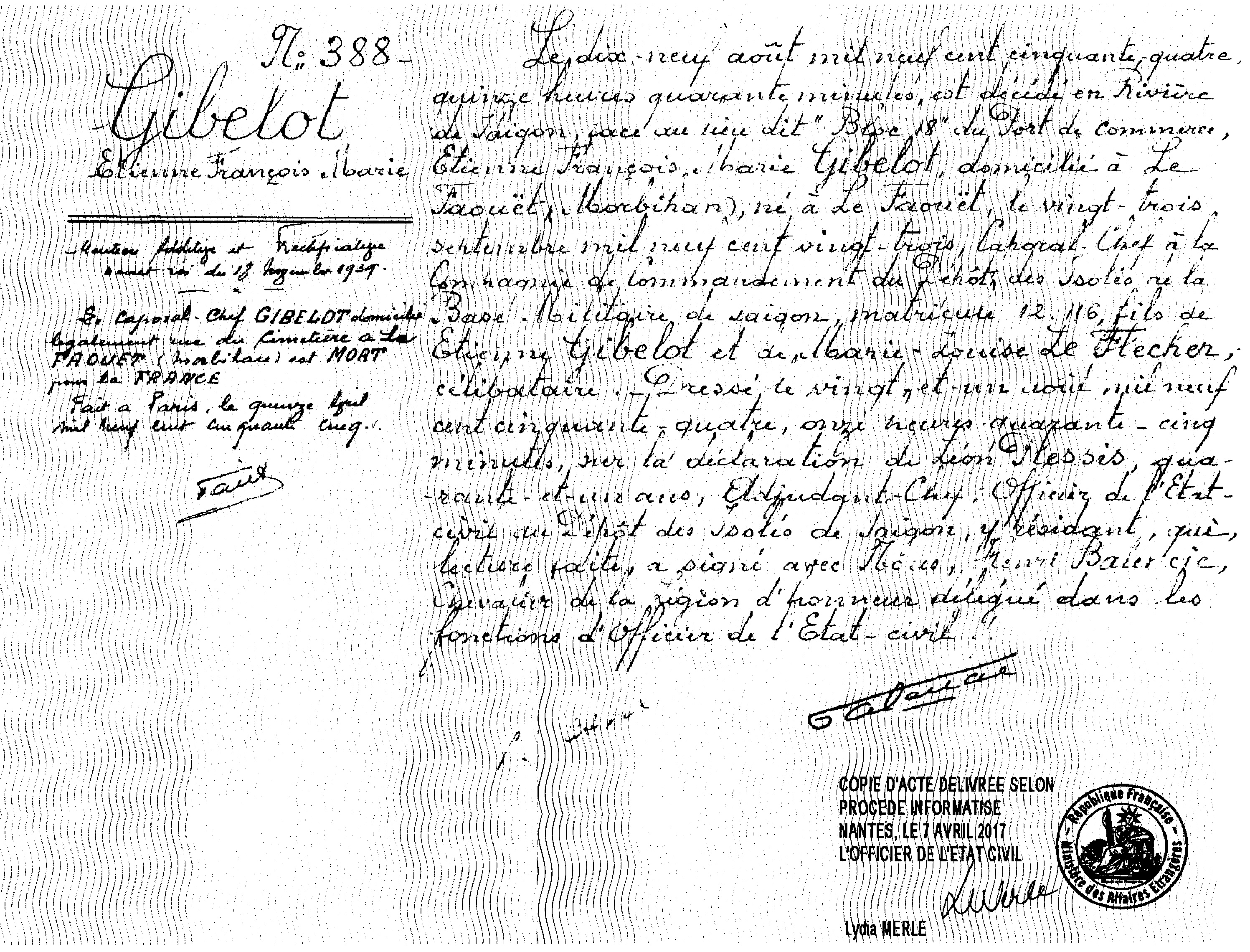 Fils d'Etienne et de Marie Louise LE FLECHER