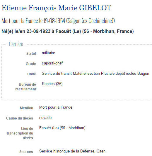 Né le 23 septembre 1923 à LE FAOUËT (Morbihan) - Décédé le 19 août 1954