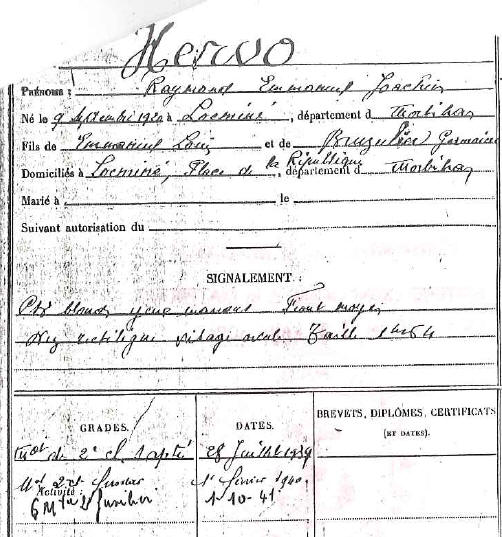 Né le 9 octobre 1920 à LOCMINE (Morbihan) - Décédé en 2014