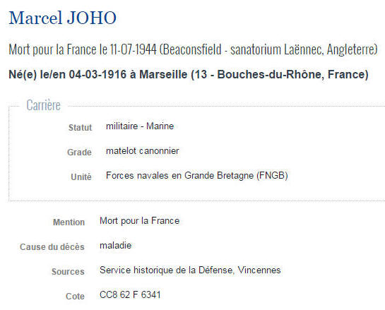 Né le 4 mars 1916 à MARSEILLE (Bouches du Rhône) - Décédé le 14 juillet