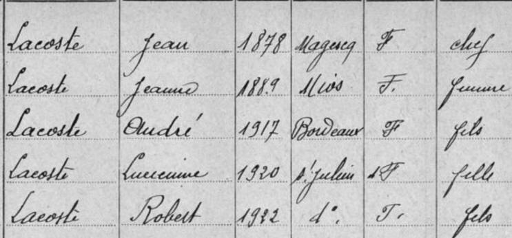 Un frère André, né à BORDEAUX le 2 novembre 1917, décédé à Bayonne le 23