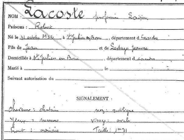 Né le 31 octobre 1922 à SAINT JULIEN en BORN (Landes) - Décédé le 14