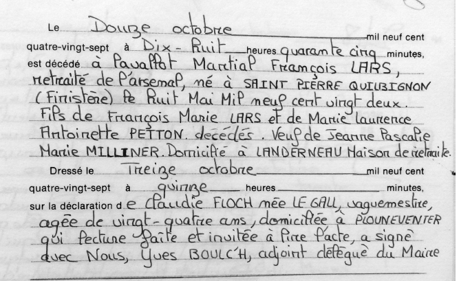 (Finistère) - Décédé le 13 septembre 1987 à LANDERNEAU (Finistère)
