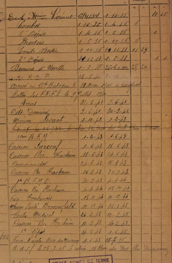 Extrait fiche matricule / Remerciements Patrice Clivio