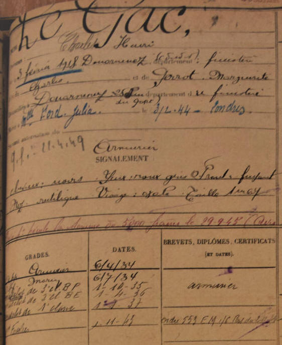 Né le 3 février 1918 à DOUARNENEZ (Finistère) - Décédé le 12 décembre