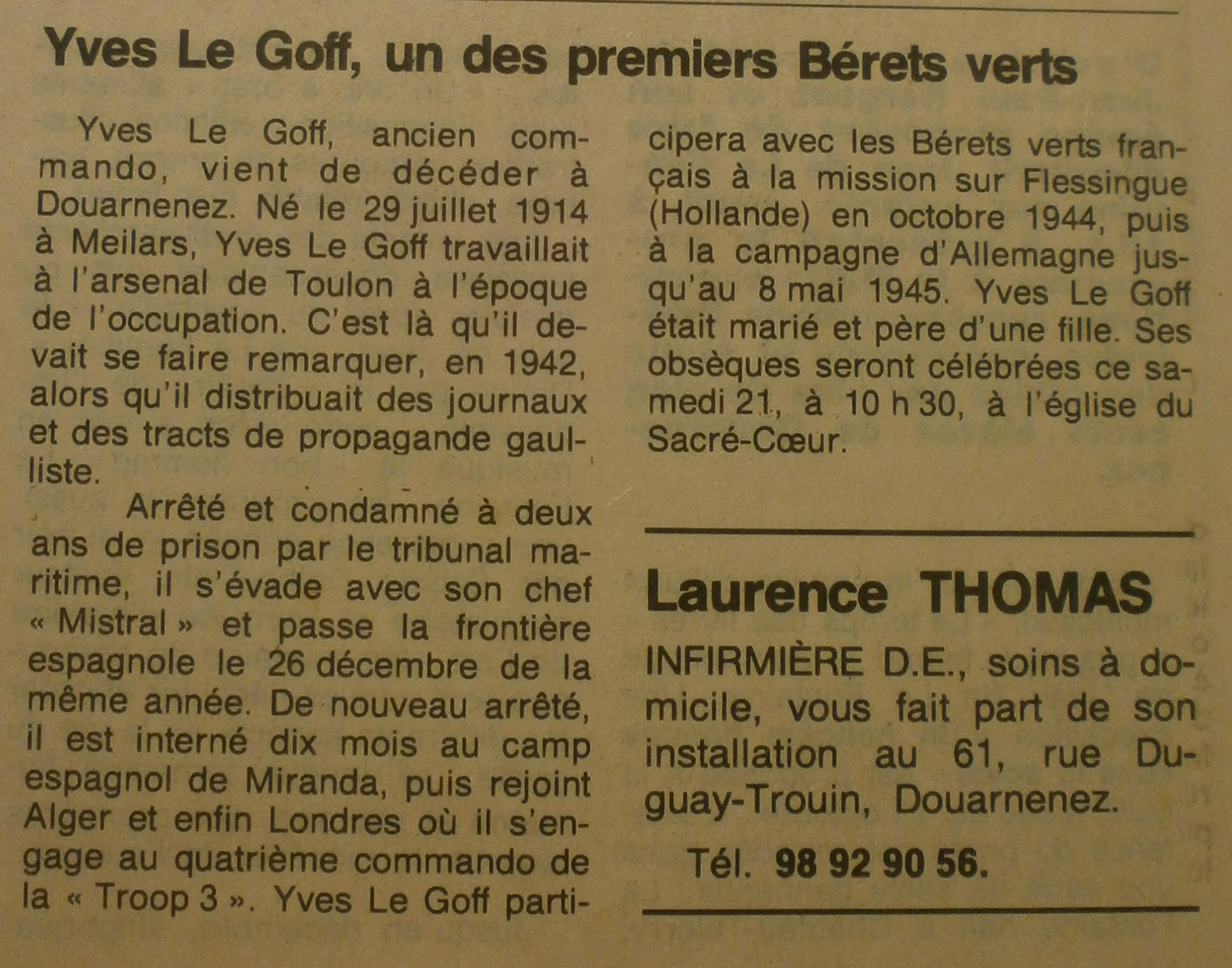 A droite avec un ami / Remerciements famille Le Goff