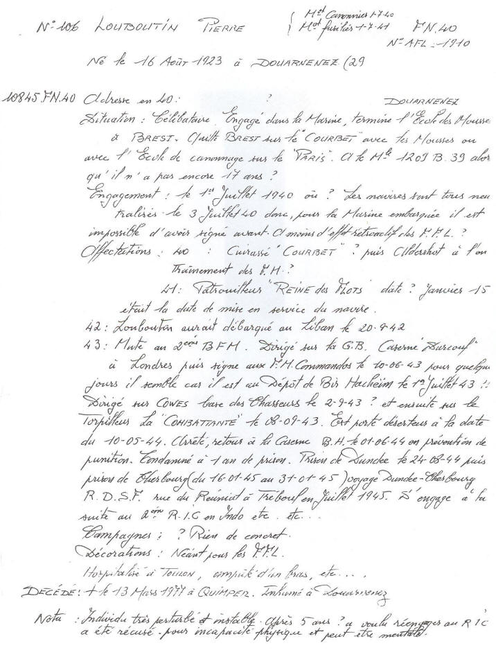 Complément établi par Pierre Cabellic (FNFL) ancien président des