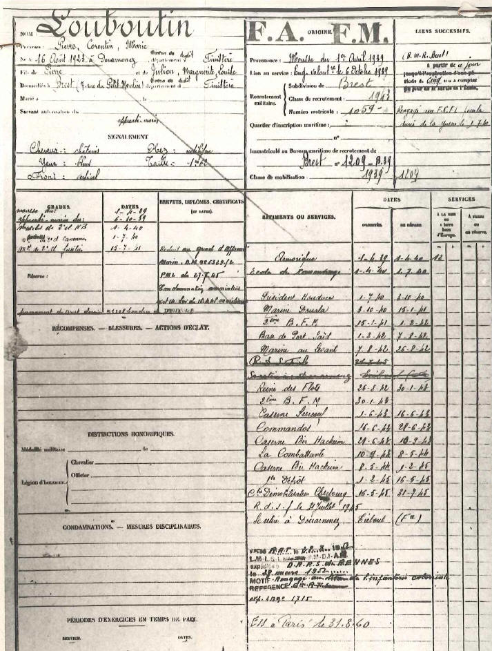 Fils de Pierre Corentin Marie (14 juillet 1896 / Tréboul - ?), maçon