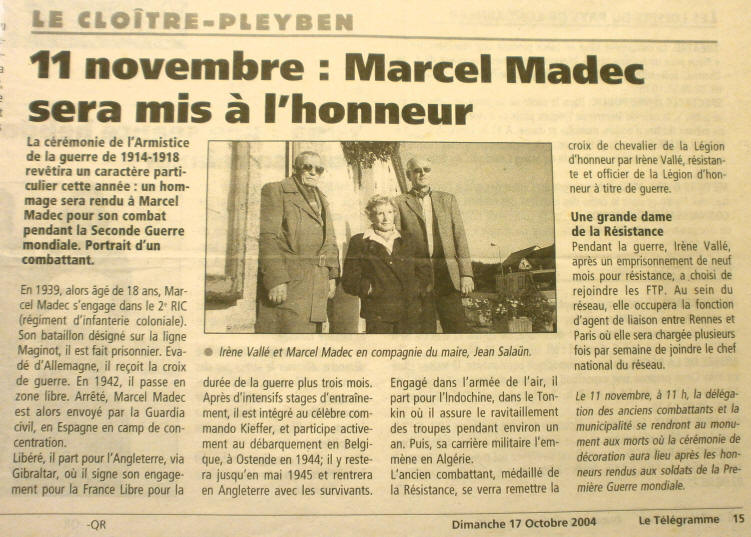 Extrait Le Télégramme de Brest / 17 octobre 2004