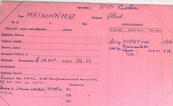 Mention d'un Albert Maissonnier, dossier résistant GR 16 P 385625,