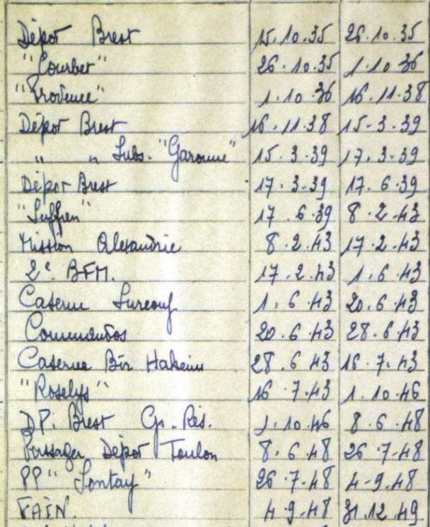 Engagement pour 3 ans le 15 octobre 1935 à Brest