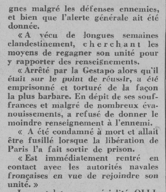 de justesse au peloton d'exécution allemand, prévu le lendemain de