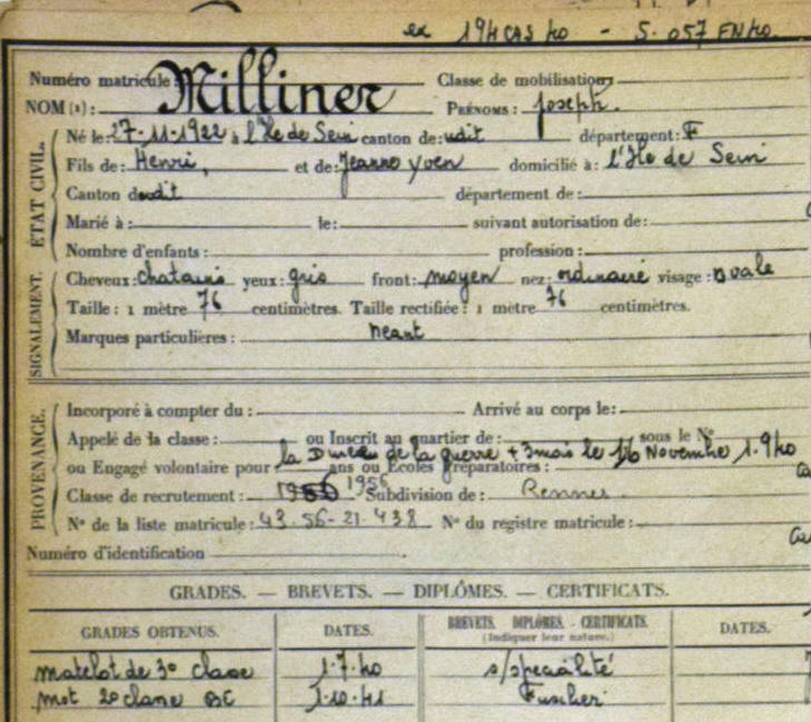 Né à Brest et à une autre date et non comme mentionné sur sa fiche matricule