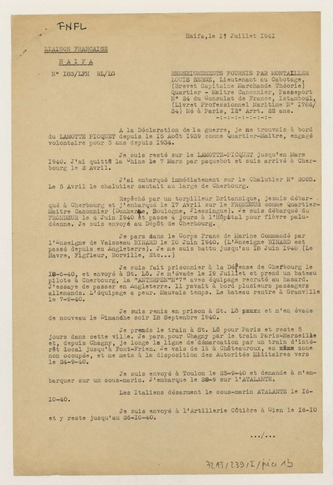 FNFL le 29 juin 1941