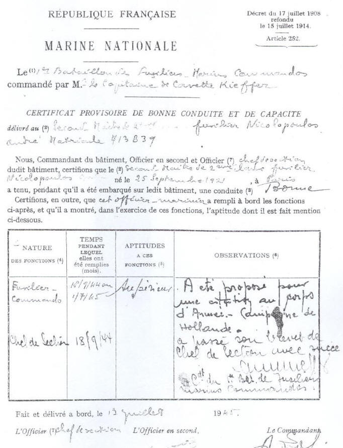 Commandos Le rigoleur - Fatou - Nicot - Nicolopoulos et Fougère (?)