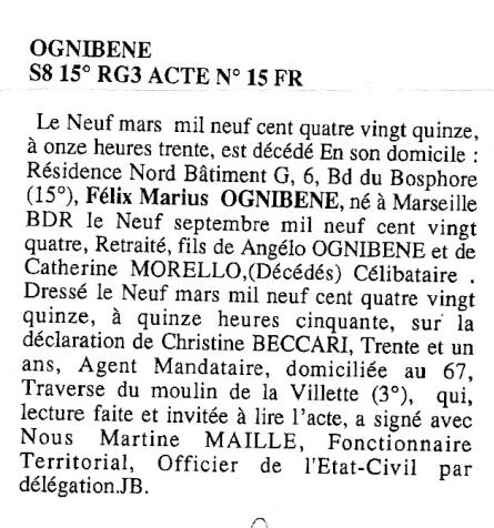 de Caterina Giovanna Guiseppa MORELLO, née à Marseille (Bouches du