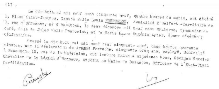 inhumé au cimetière Saint Claude à Besançon le 21 mai 1959.
