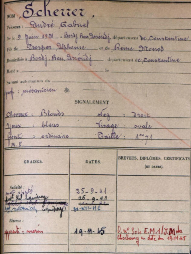 - Prosper Scherrer : né le 25/06/1898 à Medjez (Algérie), décédé le