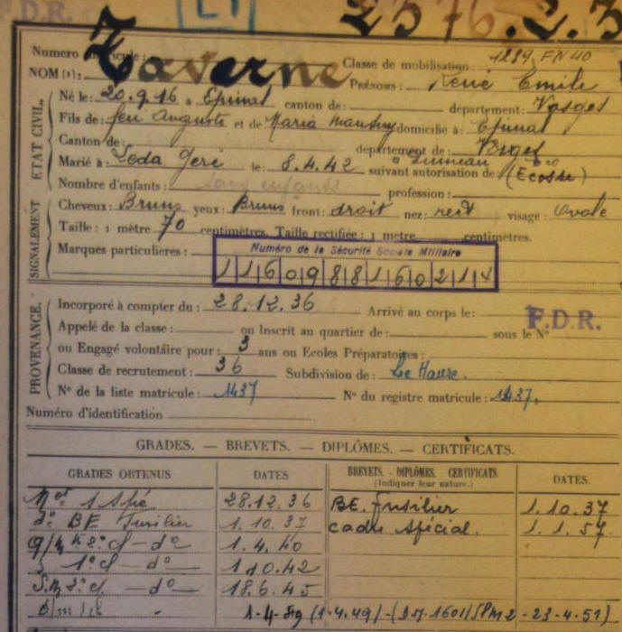 Né le 20 septembre 1916 à EPINAL (Vosges) - Décédé le 27 novembre 1993 à