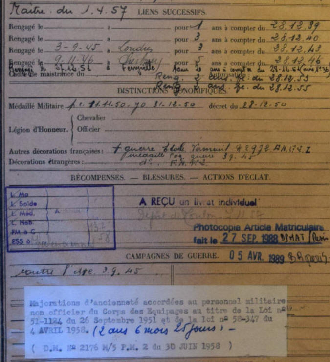 Croix de guerre le 14 juillet 1943 (4e en partant de la gauche sur la photo)