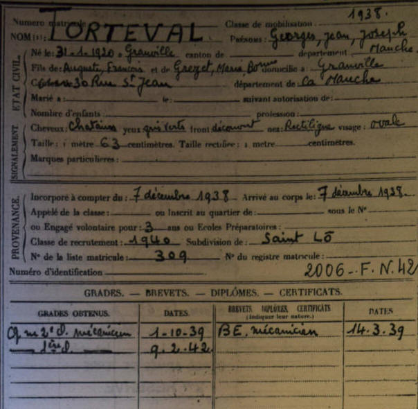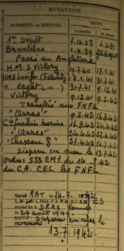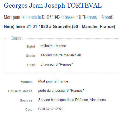 Né le 31 janvier 1920 à GRANVILLE (Manche) - Tué au combat le 13 juillet 1942 à