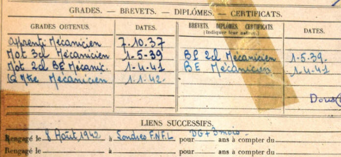 cherchait un emploi de mécanicien dans le civil, que mon père ne put lui