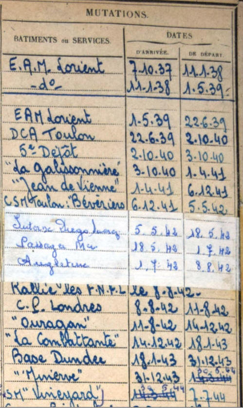 Au début de la guerre il était affecté dans un sous-marin basé à Toulon.