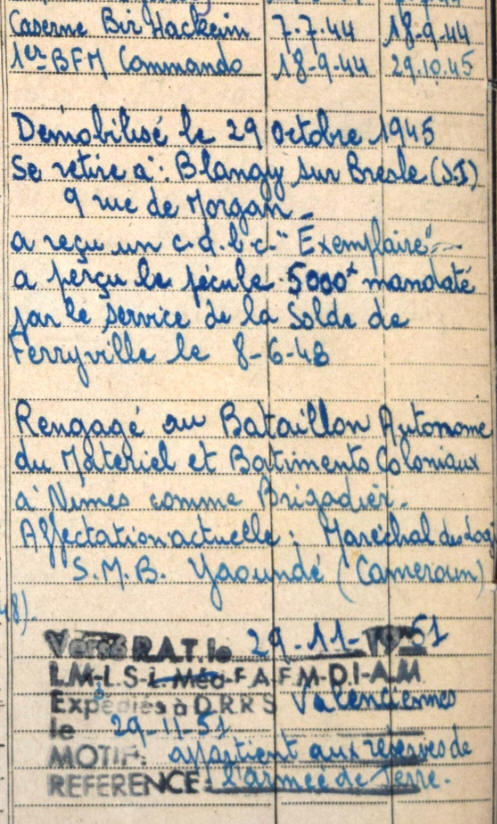 Il fut réengagé dans l’armée, servit en Indochine, se maria, et revenu