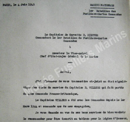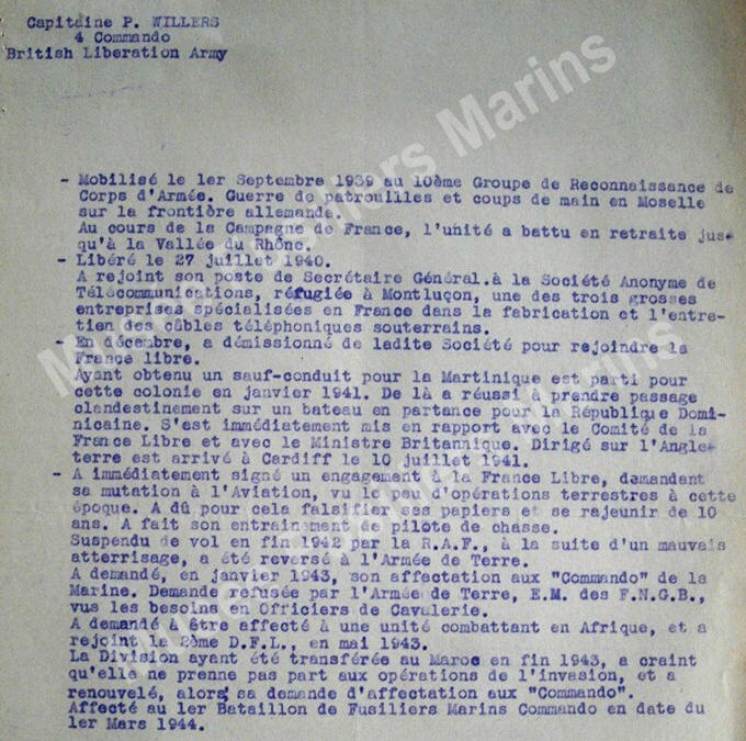 En décembre 1943, affecté à la Marine Nationale, est versé au 1er BFMC,