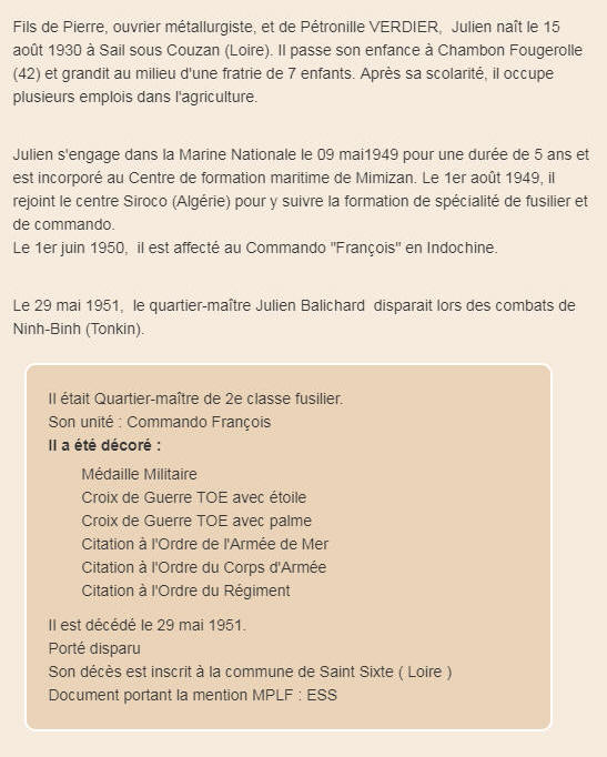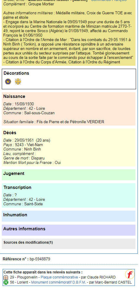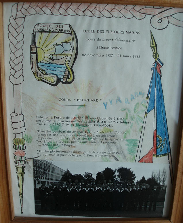Un cours porte son nom à l'Ecole des Fusiliers marins du 2 novembre