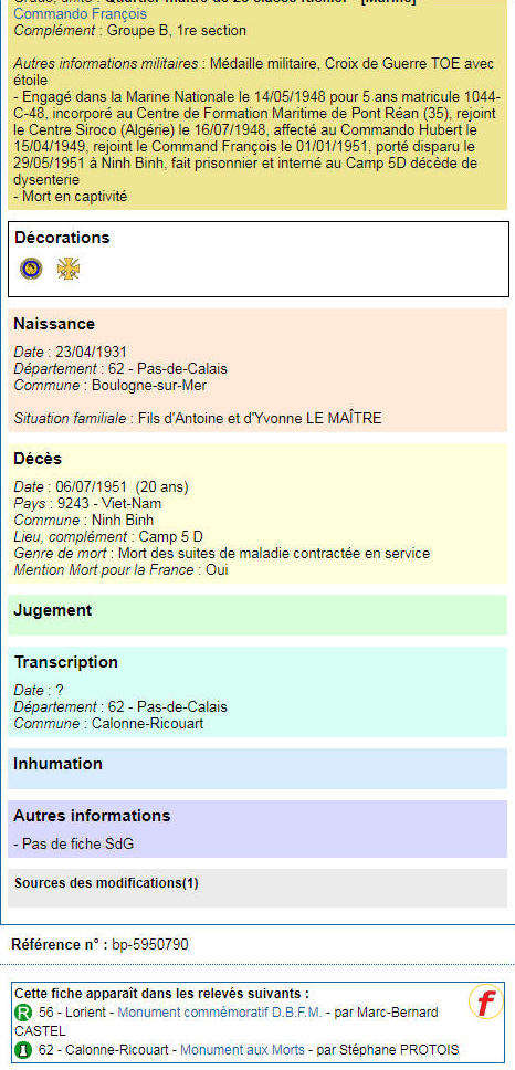 Né le 23 avril 1931 à BOULOGNE sur MER (Pas de Calais) - Décédé le