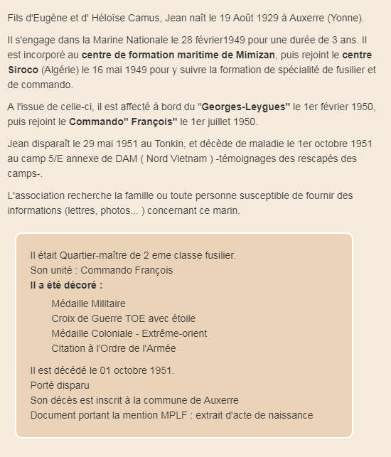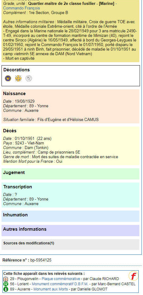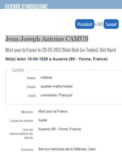Décédé le 29 mai 1951 à NINH BINH (Vietnam)