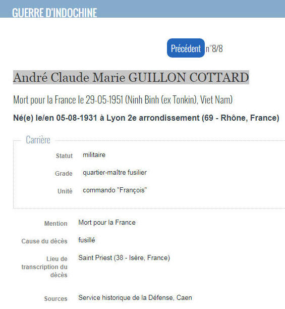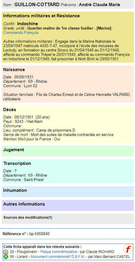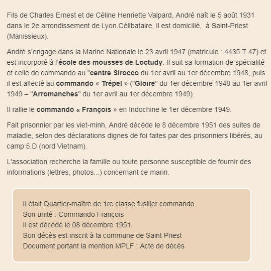Né le 5 août 1931 à LYON IIe (Rhône) - Décédé le 8 décembre 1951 au
